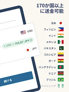 Remitlyアプリでは国境を越えた金融サービスを提供しています。アプリにより、ご家族やお友達が簡単に海外へ送金できるようになります。世界各地の約47万か所の現金受取場所、様々な通貨、50億以上の銀行口座やモバイルウォレットから、お客様にとって便利な受取方法をお選びいただけます。受取人様への手数料は発生しません。